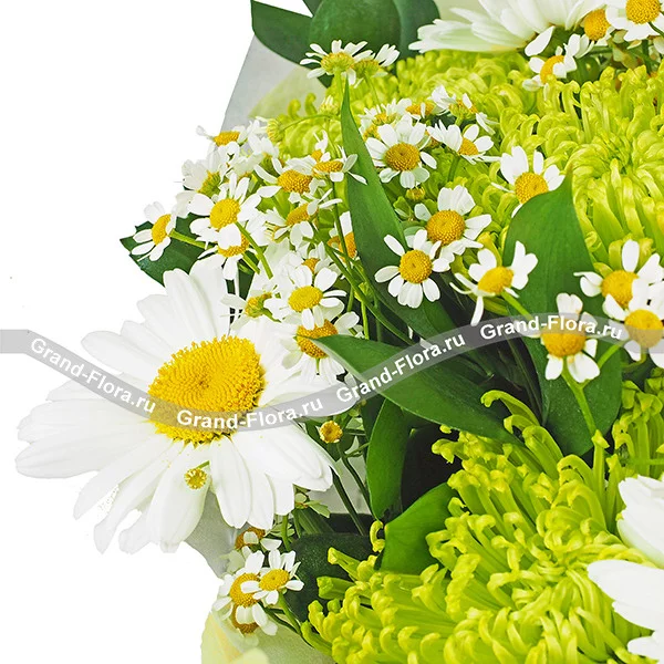 Уточняйте наличие ромашек у операторов. Возможна замена на ромашковидную хризантему!