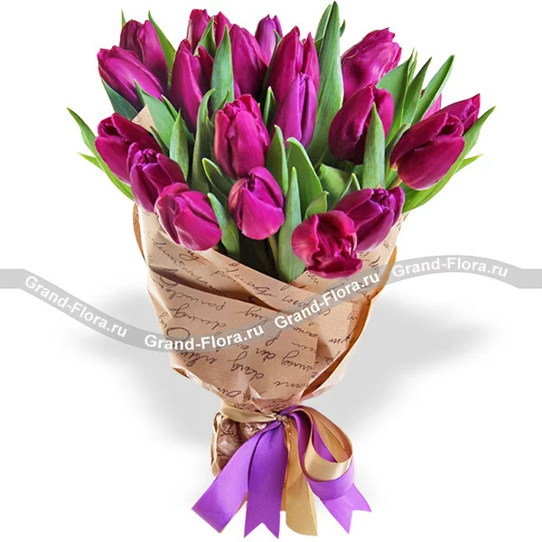 9 тюльпанов: фиолетовые тюльпаны - 9 шт., упаковка, лента.